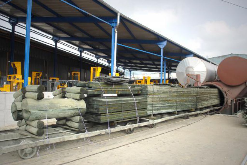 Ta kemična zaščita lesenih produktov, ki se uporabljajo na prostem ali v dotiku z zemljo je glavni in najpomembnejši del našega proizvodnega programa. V našem podjetju izvajamo najučinkovitejšo tehnologijo za kemično zaščito lesa, to je impregnacijo lesa v kotlih pod pritiskom, katera doseže najglobljo kemično zaščito lesa. Ta postopek, v kratkem, poteka takole: les se v posebnih kotlih najprej izpostavi vakuumu, da se mu odprejo lesne celice. Nato se v ta kotel dovaja kemična zaščita, ki jo predstavlja vodna raztopina anorganskih snovi. S povišanjem tlaka na 8 - 10 Atm se doseže, da se ta zaščitna raztopina vpija v les do predpisanih vrednosti. Organske snovi, ki tako prodrejo v lesne celice se nato v procesu fiksiranja vežejo na les, ga trajno zaščitijo in se iz lesa ne izpirajo.