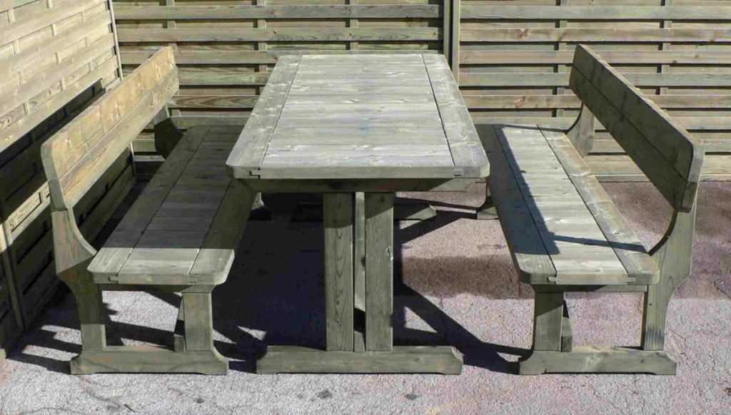 • sedežno garnituro sestavljajo miza in dve klopi,