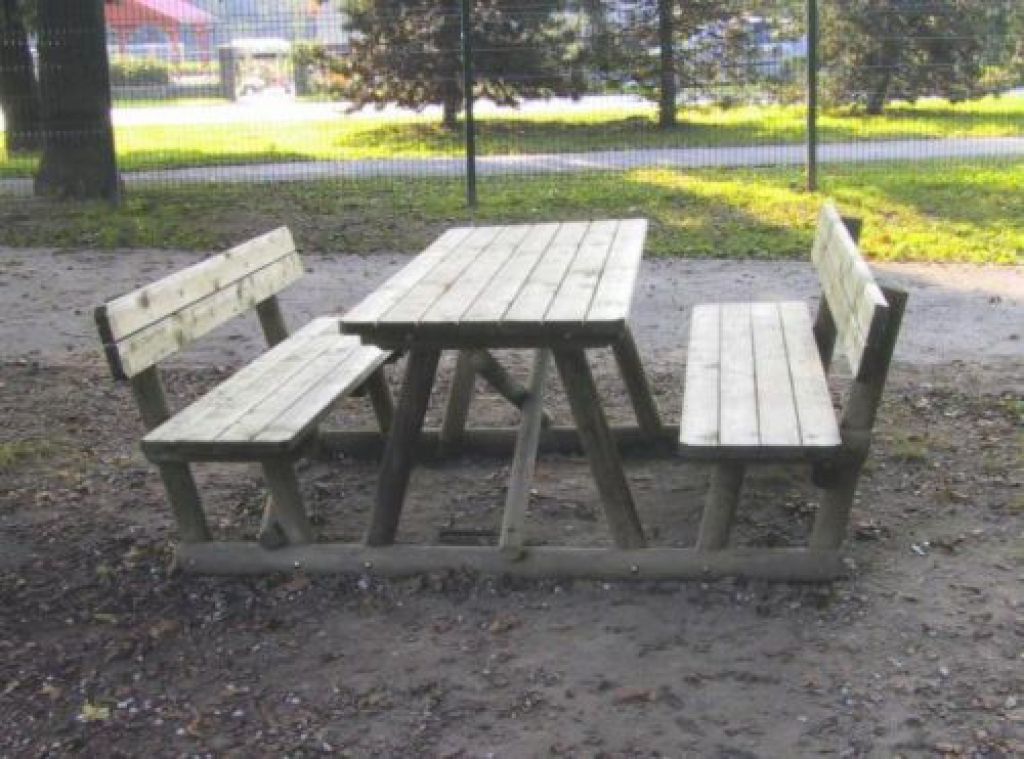 • sedežno garnituro sestavljajo miza in dve povezani klopi,