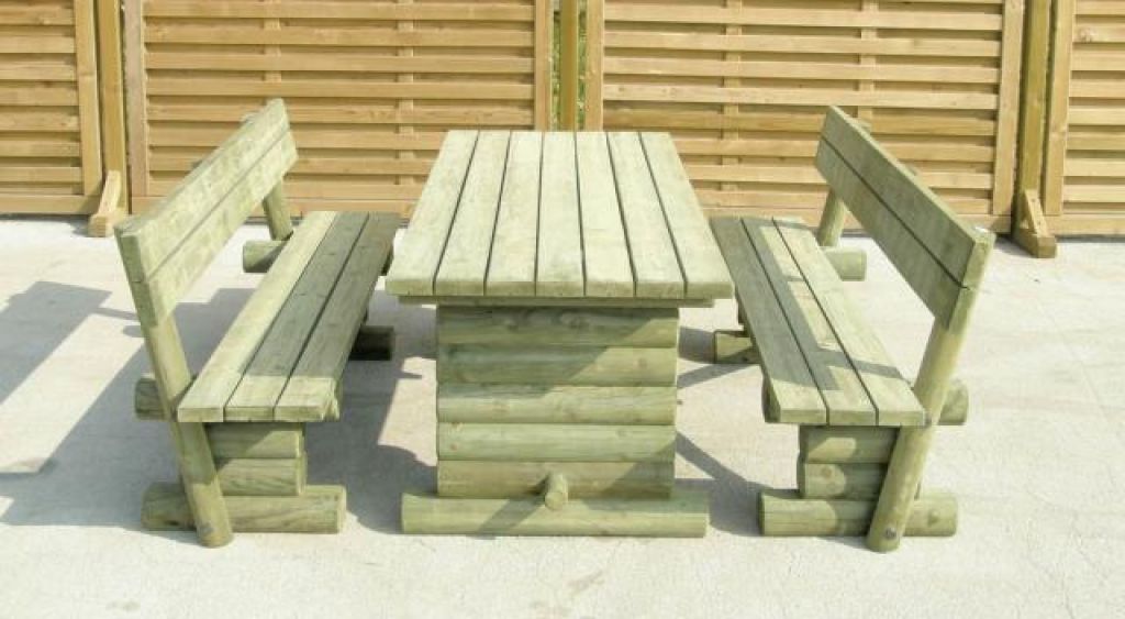 • sedežno garnituro sestavljajo miza in dve prostostoječi klopi,