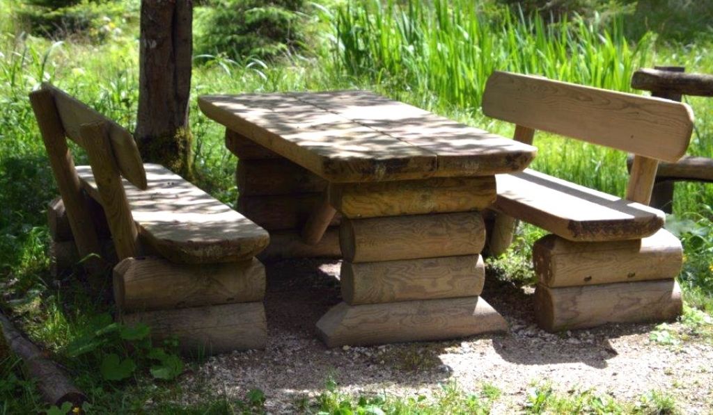 • sestavljena je iz mize in dveh prostostoječih klopi,