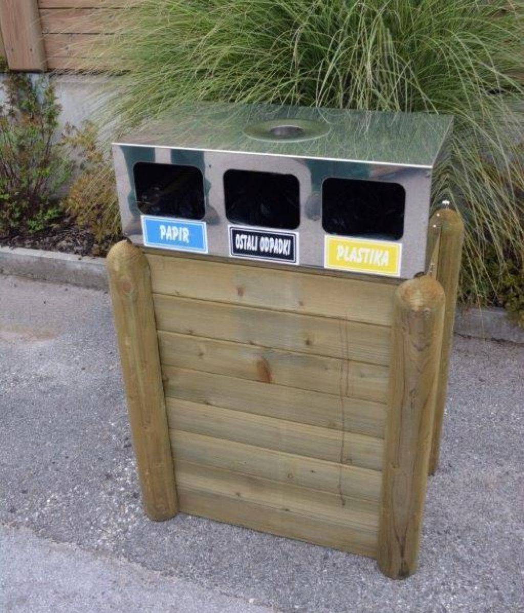 • koš je namenjen ločenemu zbiranju odpadkov, ki se zbirajo v treh PVC vrečkah, ki se napnejo preko posebnih nosilcev, pepelnik vdelan v pokrovu koša,