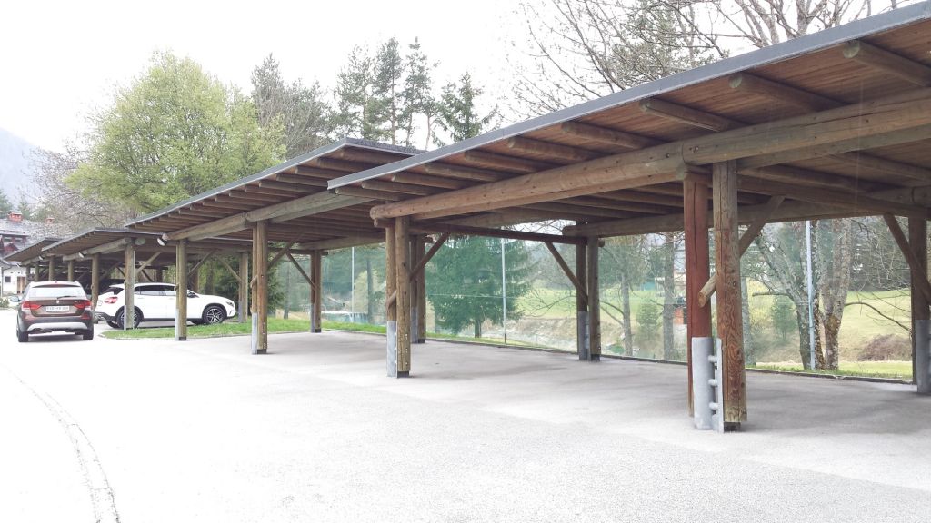 - možna je tudi varianta naslonjena na objekt, samo z zunanjimi stebri,