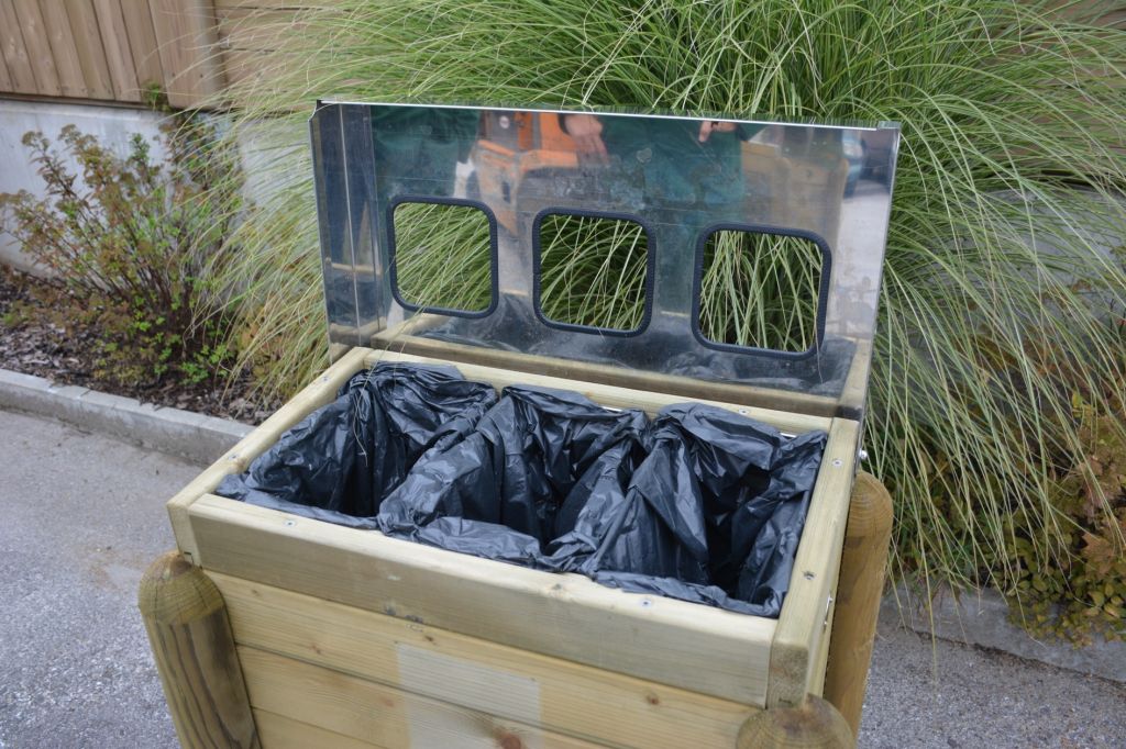 • pokrov koša z označenimi odprtinami, glede na vrsto odpadka, izdelan je iz kvalitetne inox pločevine,