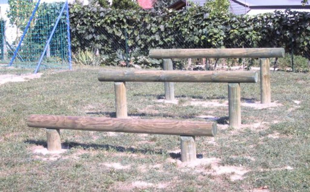 - postavi se v kombinaciji treh preprek - brvi v višinah 40, 70 in 100 cm višine, dolžina prepreke 200 cm,