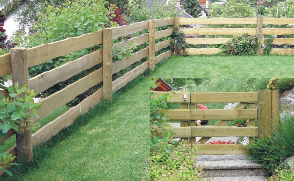 Iz naših tipskih izdelkov si lahko izdelate takšno ograjo iz nerobljenih desk, s poljubnim številom desk (dve, tri ali štiri), ki jih privijačite na osno na 200 cm zabite ošiljene količke. Za to potrebujete nerobljene deske dimenzije 3x25-30x400 cm in ošiljene stebre fi 12x150 cm. Deske so poskobljane in odrezane na nazivno dolžino. Dodatno vam lahko ponudimo tudi nerjaveče lesne vijake za montažo po ugodni ceni.