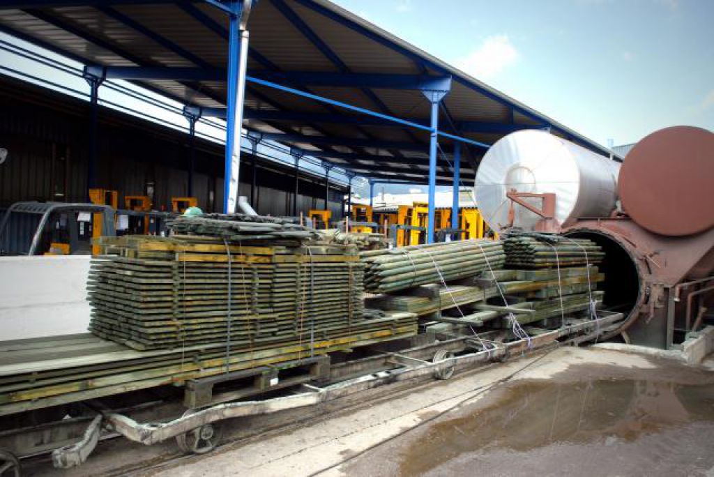 Ta kemična zaščita lesenih produktov, ki se uporabljajo na prostem ali v dotiku z zemljo je glavni in najpomembnejši del našega proizvodnega programa. V našem podjetju izvajamo najučinkovitejšo tehnologijo za kemično zaščito lesa, to je impregnacijo lesa v kotlih pod pritiskom, katera doseže najglobljo kemično zaščito lesa. Ta postopek, v kratkem, poteka takole: les se v posebnih kotlih najprej izpostavi vakuumu, da se mu odprejo lesne celice. Nato se v ta kotel dovaja kemična zaščita, ki jo predstavlja vodna raztopina anorganskih snovi. S povišanjem tlaka na 8 - 10 Atm se doseže, da se ta zaščitna raztopina vpija v les do predpisanih vrednosti. Organske snovi, ki tako prodrejo v lesne celice se nato v procesu fiksiranja vežejo na les, ga trajno zaščitijo in se iz lesa ne izpirajo.