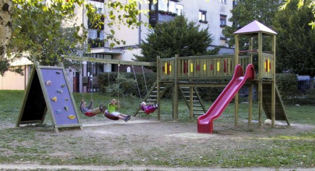 - dodana je prečka s tremi gugali - gumiranimi gugalnicami, deskami - sedeži s kovinskim jedrom na vroče pocinkanih verigah, možna so tudi ostala gugala,
