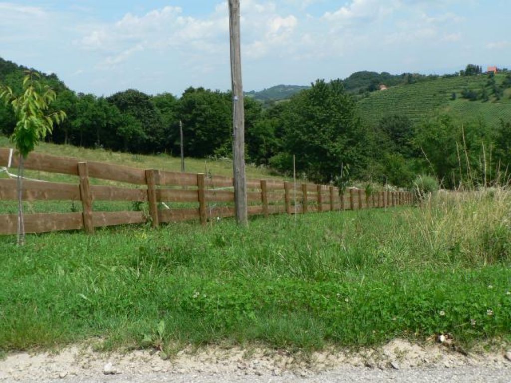 • stebri so lahko okrogli ali iz žaganega lesa, dolžina odvisna od višine ograje,