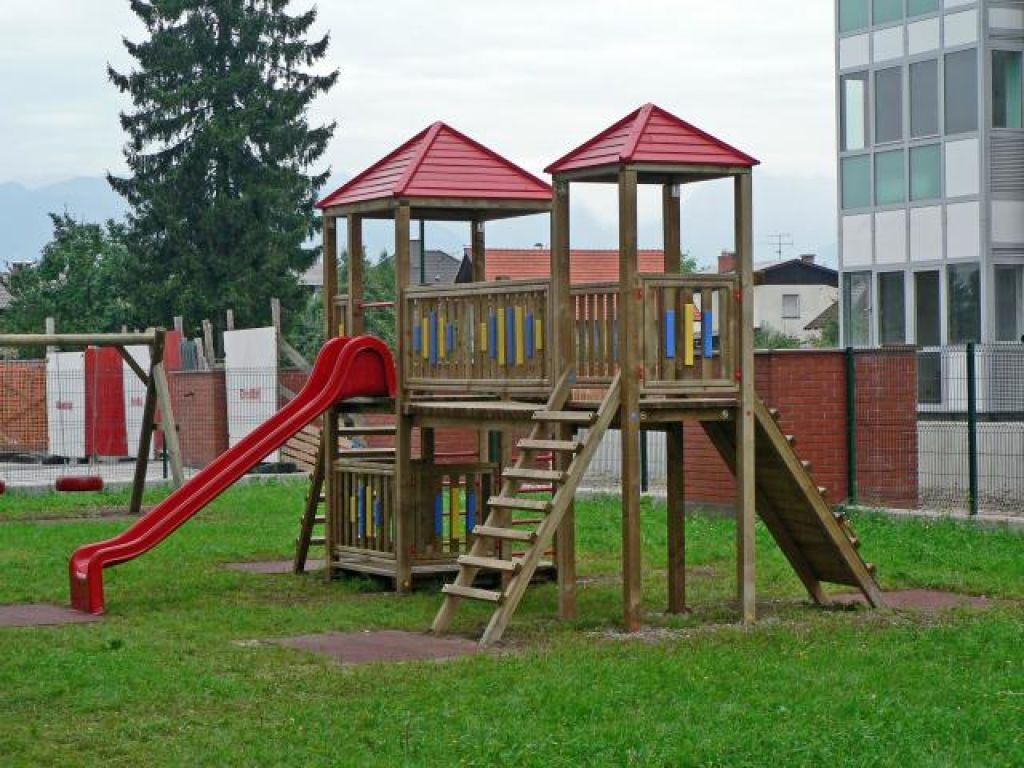 - oba stolpa imata streho, podesta in tobogan na višini 150 cm, ter dostop po lestvama plezalni steni s plastificirano vrvjo s kovinskim jedrom,