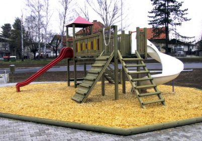 Tip 866 B - iz okroglic 14 cm, 4x gugalnica gumirana deska, tobogan 150 cm, plezala